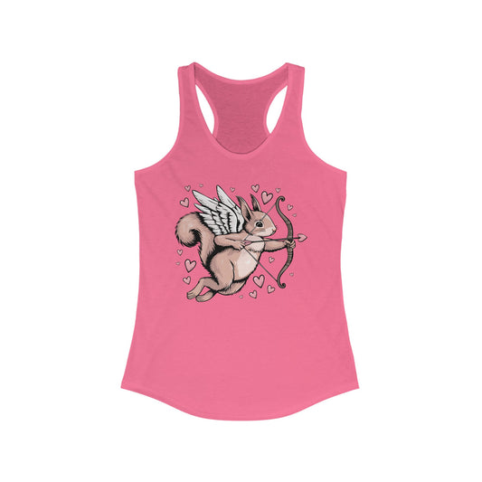Cupid Squirrel Valentine's Day Women's Racerback Tank Top, Love Heart Valentine Cupid Arrow Squirrels Ladies Sleeveless Shirt