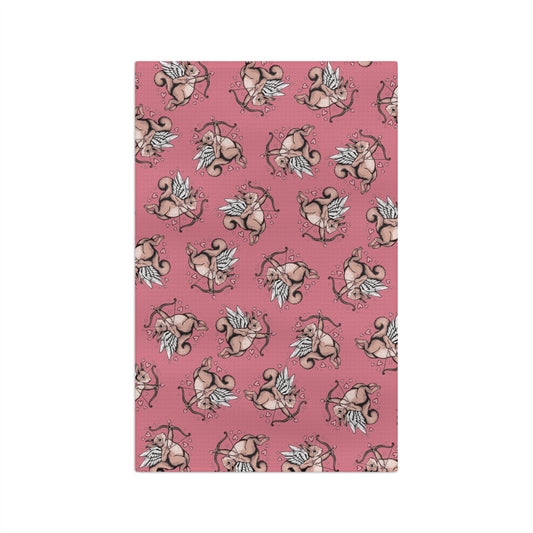 Cupid Squirrel Valentine's Day Pink Microfiber Tea Towel Kitchen Hand Towel with Cupid Arrow Squirrels Seasonal Kitchen Home Decor