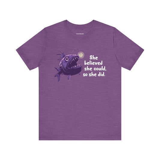Deep Sea Anglerfish T-shirt - "She Believed She Could, So She Did" - Feminist Statement Tee, Gift for Women Empowerment