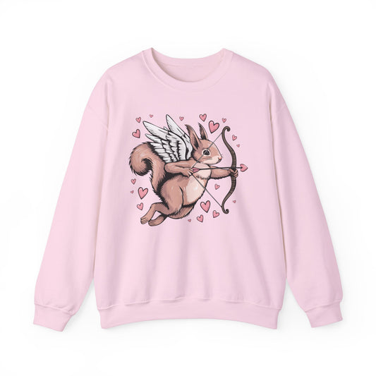 Cupid Squirrel Valentine's Day Sweatshirt, Love Heart Valentine Cupid Arrow Squirrels Long Sleeve Crew Neck Sweater Unisex Mens Womens