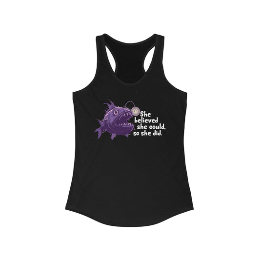 Deep Sea Anglerfish Racerback Tank Top - "She Believed She Could, So She Did" - Feminist Statement Sleeveless Shirt, Women Empowerment