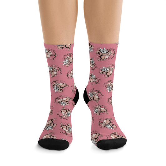 Cupid Squirrel Valentine's Day Socks, Pink Love Heart Valentine Cupid Arrow Squirrels Socks Cute Romantic Gifts - One Size