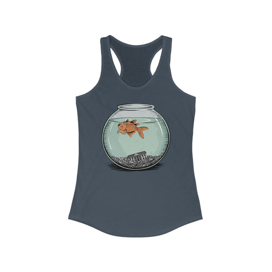 Dead Goldfish In A Fishbowl Tank Top, Funny Politics Women's Tops, Leftist Liberal Political Humor Shirts, Orange Fish Floating