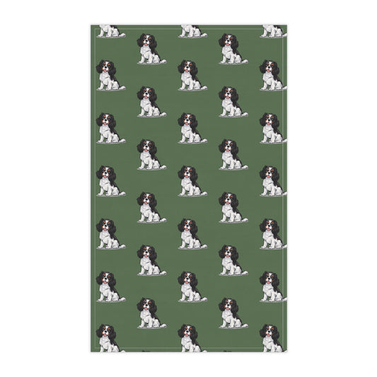 Green Cavalier King Charles Puppy Dog Tea Towel, Kitchen Hand Towels Decor Gifts, Home Accessories, Dogs Owner Gift
