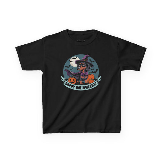 Halloweenie Kids Tee, Spooky Dachshund Shirt, Happy Halloween T-shirt, Kids Witch Cotton Shirts, Fun Fall Holiday Outfits Boys Girls Unisex