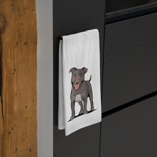 Gray Pit Bull Terrier Dog Kitchen Tea Towel, Pitbull Owner Gift, Hand Dish Towels Home Decor
