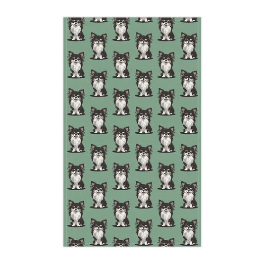 Green Long Haired Chihuahua Puppy Dog Tea Towel, Kitchen Hand Towels Decor Gifts, Sage Green Home Accessories