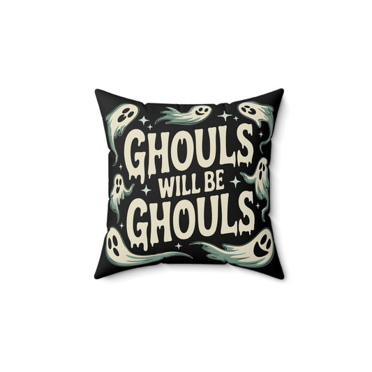 Halloween Throw Pillow, Ghouls Will Be Ghouls Spooky Ghost Faux Suede Pillow & Cover, Gothic Fall Holiday Home Decor