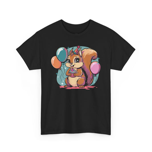 Happy Birthday Party Squirrel T-shirt Squirrels Balloons Cupcake Short Sleeve Tee Celebration B-day Unisex Womens Mens
