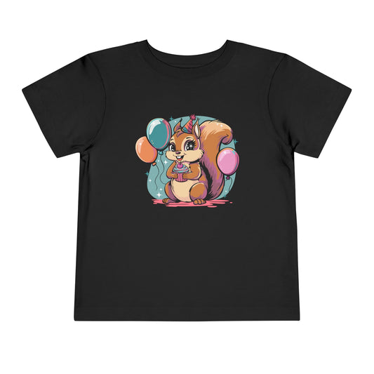 Happy Birthday Party Squirrel Toddler T-shirt Squirrels Balloons Cupcake Short Sleeve Tee Celebration B-day Toddlers Bday Outfit