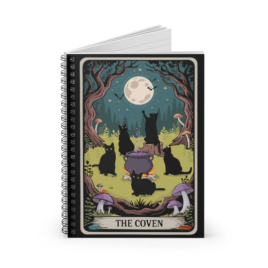 Mystical Black Cats Coven Tarot Card Notebook | 6"x8" Spiral Bound Lined Note Book, Witchcraft Journal, Halloween Cat Lover Gifts