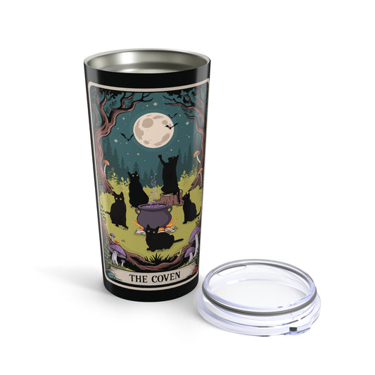 Mystical Black Cats Coven 20oz Tumbler, Tarot Card Cat Mug Witchy Gifts, Halloween Decor, Eco-Friendly Travel Mugs