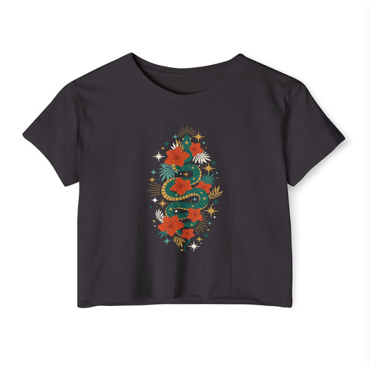 Mystic Jade Snake Women's Boho Crop Top, Festival T-shirt, Bohemian Serpent Shirt, Hippie Tee, Occult Cropped Shirt, Festival Clothing