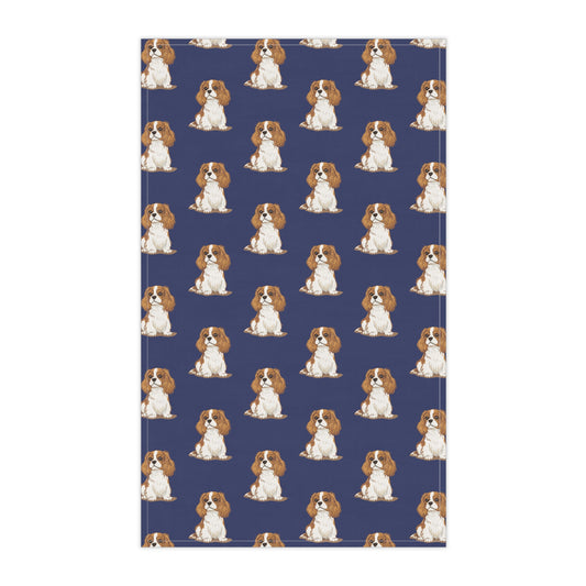 Navy Cavalier King Charles Puppy Dog Tea Towel, Kitchen Hand Towels Decor Gifts, Home Accessories Dogs Owners Gift Ideas