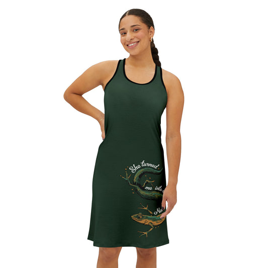 She Turned Me Into A Newt Women's Racerback Dress, Green Summer Tank Top Dress