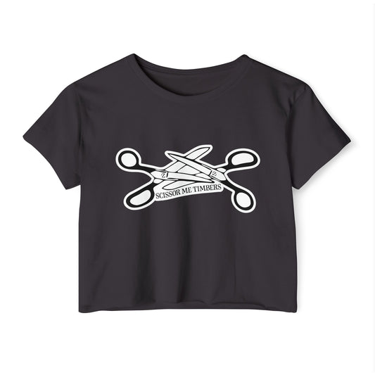 Scissor Me Timbers Crop Top, Womens LGBTQIA Summer Pride Festival Cropped Tee, Funny Lesbian Gay Queer Apparel Scissors