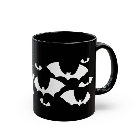 Bats Halloween Black Ceramic Coffee Mug 11oz with Spooky Flying Bat Gothic Goth Design Tea Mugs, Fall Gifts