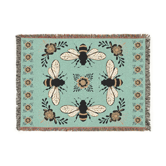 Bees and Flowers Botanical Woven Blanket | Home Decor Floral Bee Throw Blankets, 4 Bee Pattern Gift for Women