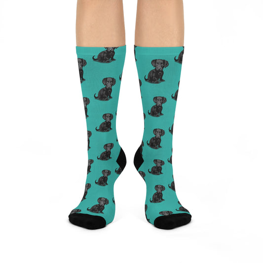 Chiweenie Puppy Dogs Cushioned Crew Socks, Unisex One Size - Chihuahua Dachshund Pattern Print, Dog Lover Gift, Pet Owner Accessories