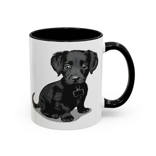 Chiweenie Puppy Dog Coffee Mug with Black Accent Handle, 11oz Cute Chihuahua Dachshund Mix Dog Lover Gift, Unique Ceramic Tea Cups & Mugs