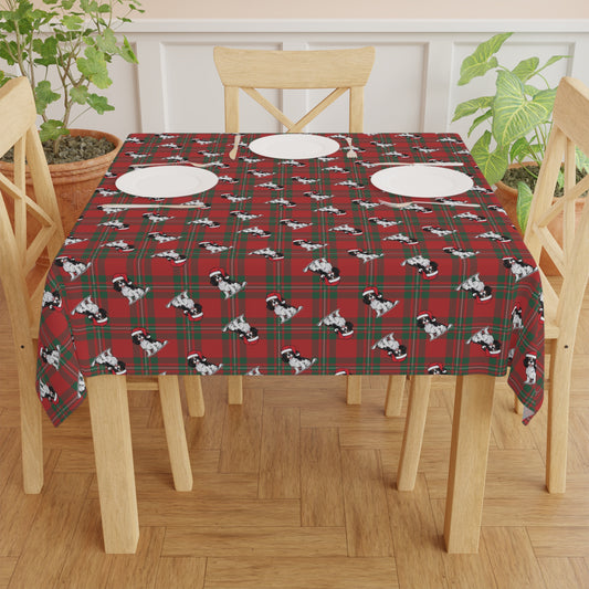 Christmas Long Haired Chihuahua Dog Tablecloth, Plaid Holiday Santa Dog Table Cloth, Festive Home Decor, Winter Party Dining Setting