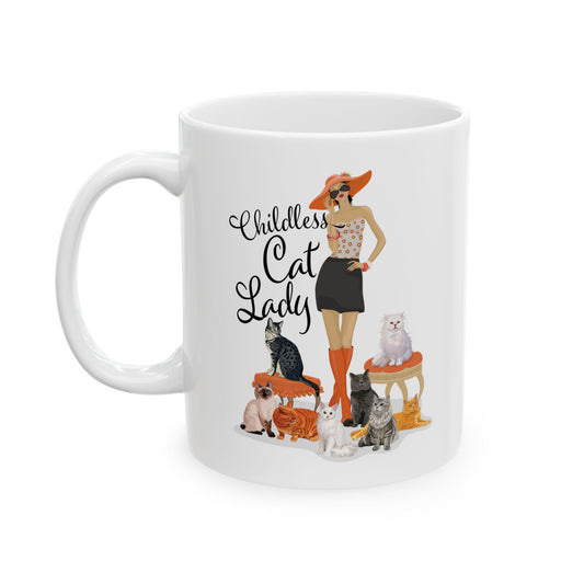 Childless Cat Lady Ceramic Coffee Tea Mug 11oz - Gifts for Childfree Crazy Cat Ladies