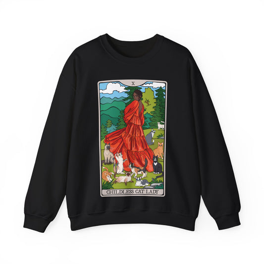 Childless Cat Lady Tarot Card Sweatshirt, Childless Woman Nature Crewneck Sweater, Witchy Apparel - POC Dark Skin Tone