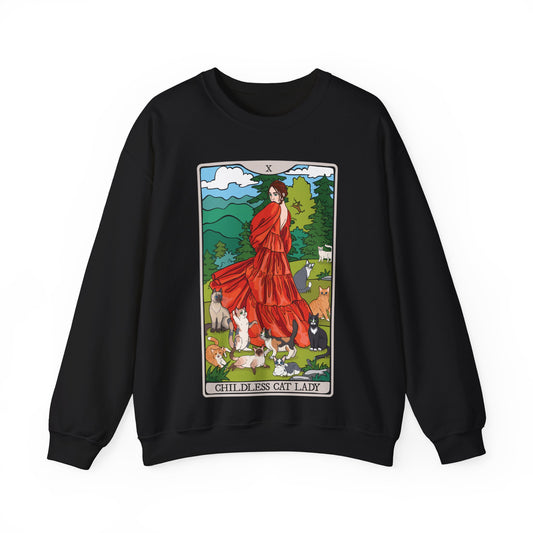 Childless Cat Lady Tarot Card Sweatshirt, Childless Woman Nature Crewneck Sweater, Witchy Feline Lover Gift, Occult Apparel, Boho Cats Shirt
