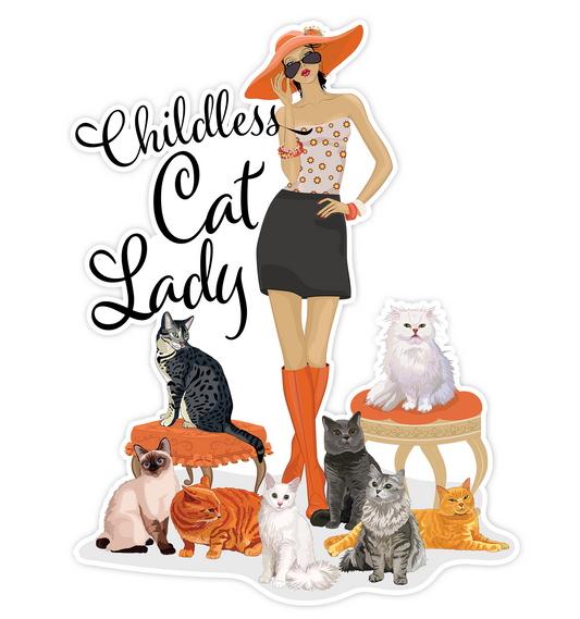 Childless Cat Lady Sticker - Waterproof, Fade-Resistant Decal Stickers Child-free Woman with Cats