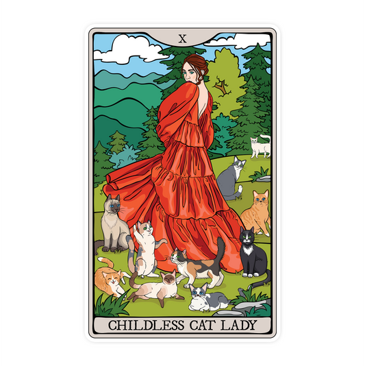 Childless Cat Lady Tarot Card Sticker - Waterproof, Fade-Resistant Decal Stickers Child-Free Woman and Cats Design