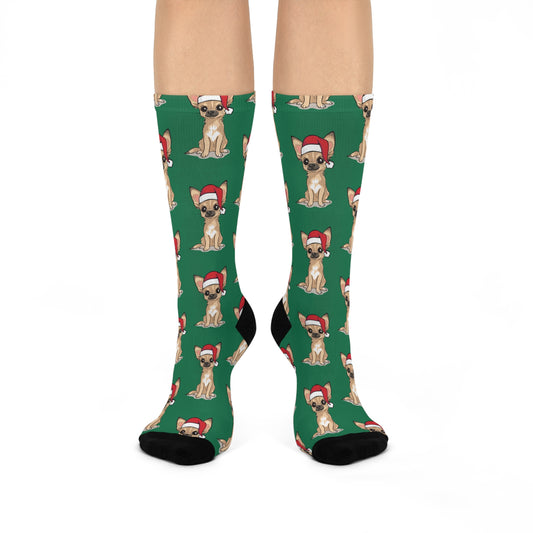 Christmas Santa Chihuahua Dog Crew Socks, Festive Chihuahua Dogs Novelty Socks, Pet Owner Holiday Gifts, Cozy Winter Footwear