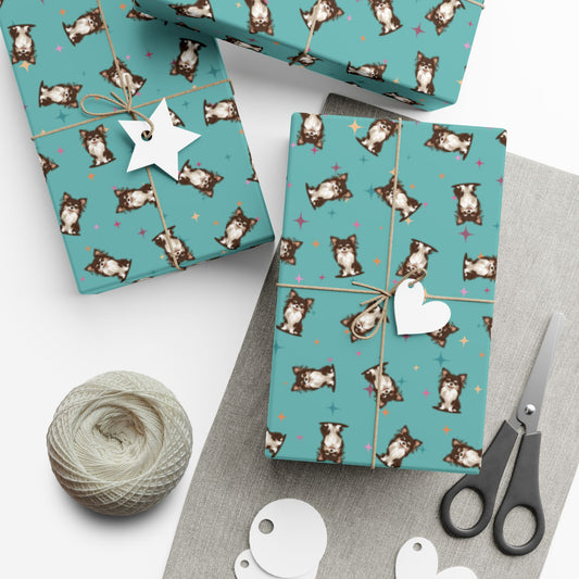 Long Haired Chihuahua Dog Wrapping Paper, Dogs Print, Cheery Pet Gift Wrap Puppy, Birthday Anniversary Holiday