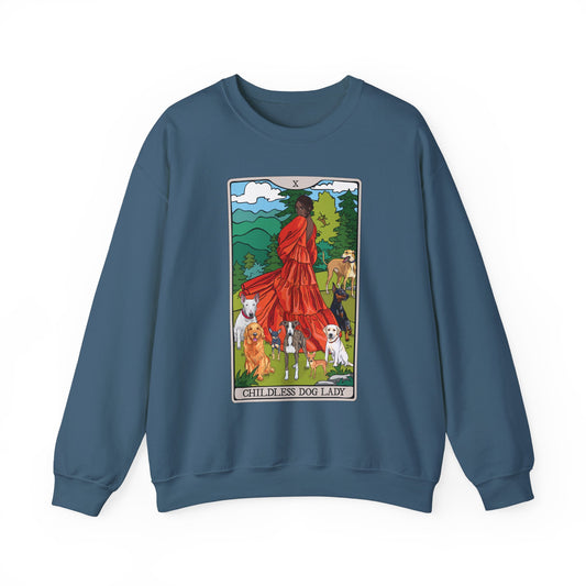 Childless Dog Lady Tarot Card Sweatshirt, Childless Women's Crewneck Sweater, Witchy Dog Lover Long Sleeve Eco-Friendly Shirt