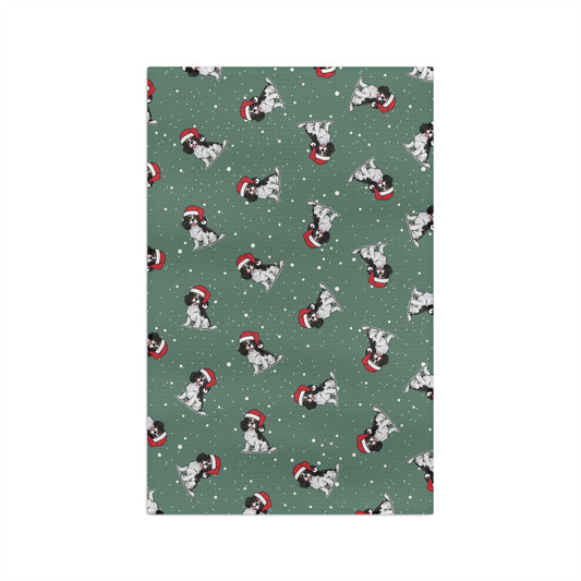 Cavalier King Charles Spaniel Dog Christmas Kitchen Hand Towel Microfiber Green Holiday Tea Towel with Dogs in Santa Hat Pattern