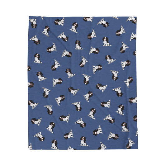 Charlie Tricolor Cavalier King Charles Spaniel Dog Blue Velveteen Plush Blanket with Pet Dog Cavalier Puppy Print