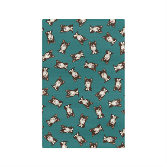 Long Haired Chihuahua Dog Kitchen Hand Towel Microfiber Teal Tea Towel with Fluffy Puppy Dogs Pattern