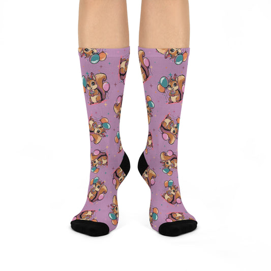 Happy Birthday Party Squirrel Cushioned Crew Socks Purple Squirrels Balloons Cupcake Socks Celebration Squirrels B-day Gift One Size Unisex