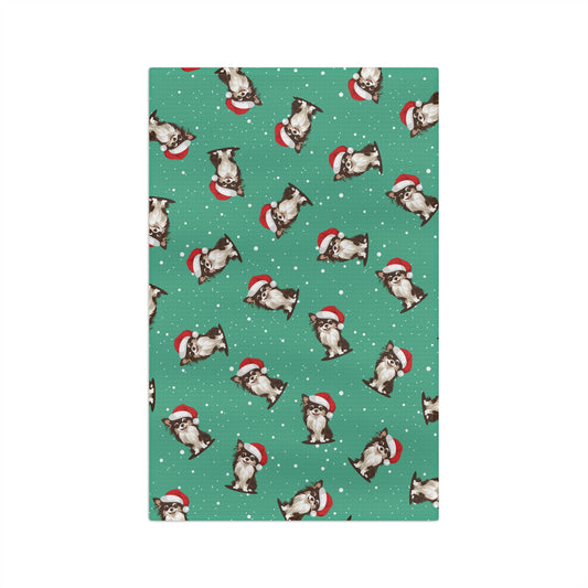 Long Haired Chihuahua Dog Christmas Kitchen Hand Towel Microfiber Green Holiday Tea Towel with Dogs in Santa Hat Pattern