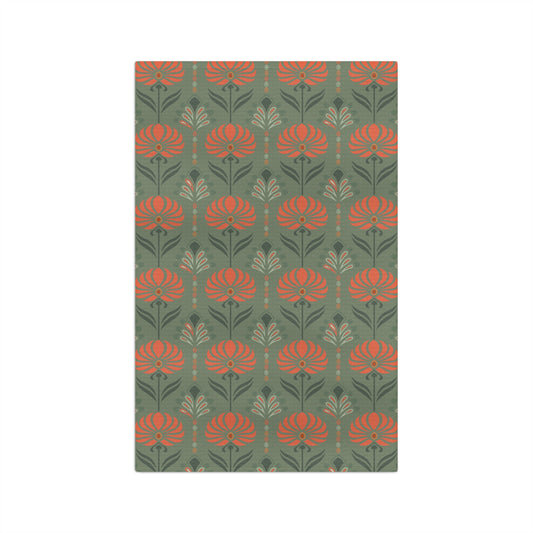 Sage Green & Orange Floral Print Microfiber Tea Towel - Kitchen Hand Towel with Flower Design