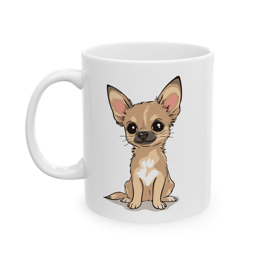Long Haired Chihuahua Dog Ceramic Coffee Tea Mug 11oz with Puppy Dog Chihuahua Print
