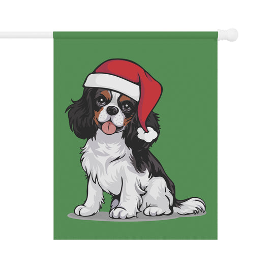 Tricolor Cavalier King Charles Spaniel Dog Christmas Garden Flag, Holiday Yard Decorations, Outdoor Xmas Decor