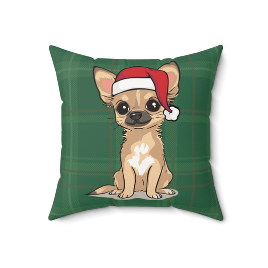 Christmas Dogs Throw Pillow, Long Haired Chihuahua Dog Holiday Home Decor, Faux Suede Plaid Cushion Pillows, Xmas Decorations