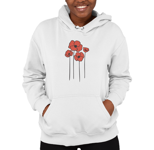 Red Poppy Flowers Hoodie, Floral Poppies Pullover Hooded Sweatshirt, Gift for Nature Lovers, Perfect Hoodies for Fall and Spring
