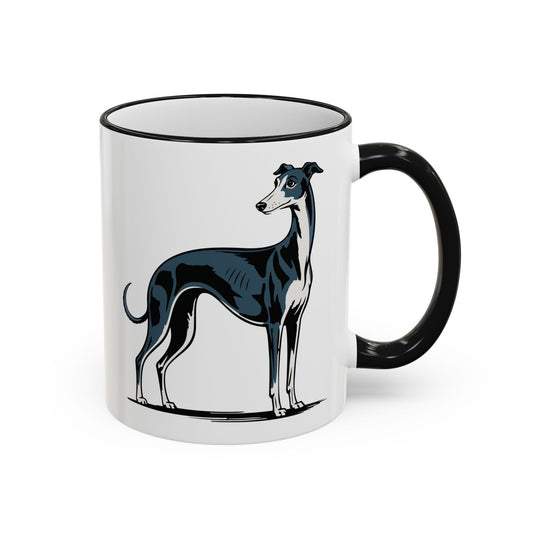 Elegant Greyhound Dogs Illustration Mug | 11 oz Ceramic Coffee Cup Mugs Black Accent Rim & Handle, Greyhounds Dog Print