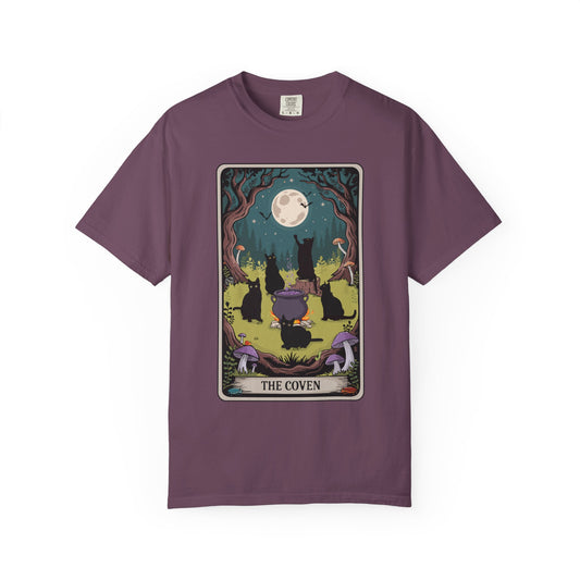 The Coven Tarot Black Cats T-shirt, Witchy Halloween Cat Tee, Full Moon Forest Cauldron Shirt, Wiccan Pagan Magic Top, Witch Gothic Apparel