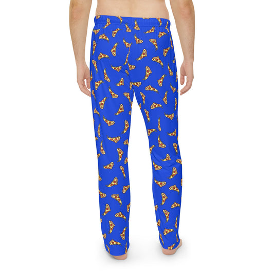 Pepperoni Pizza Slice Pattern Pajama Pants, Blue Cheese Pizzas Design PJ Bottoms, Loungewear Sleepwear, Fun Novelty Cheesy Pizza Slices