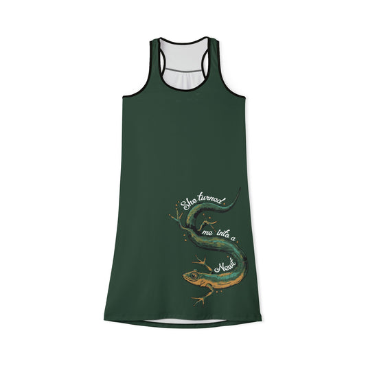 She Turned Me Into A Newt Women's Racerback Dress, Green Summer Tank Top Dress