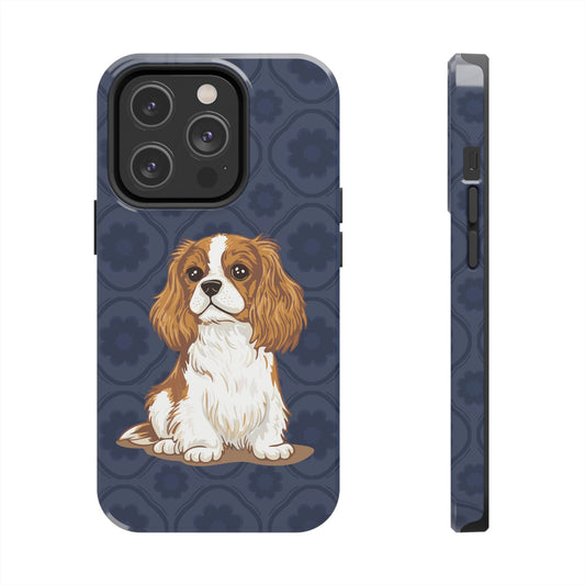 Cavalier King Charles Spaniel Dog Phone Case, Tough Phone Cases Pet Dogs Blue Pattern