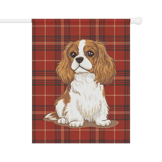 Blenheim Cavalier King Charles Spaniel Red Tartan Plaid Outdoor Garden Banner Flag, Christmas Holiday Yard Decorations