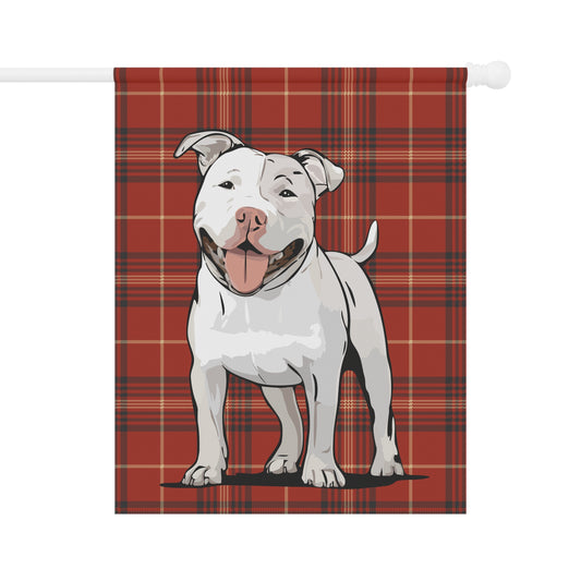 White Pit Bull Terrier Dog Red Plaid Outdoor Garden Banner Flag, Pitbull Christmas Holiday Yard Decorations